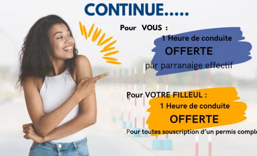🚗 Parrainage permis de conduire : 1 heure de conduite OFFERTE pour le parrain et le filleul ! 🎁